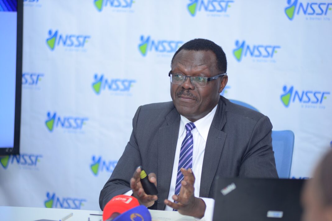 PHOTO: NSSF Ag. MD Patrick Ayota addressing media today morning. (Photos from NSSF)